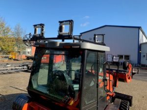 Hierrüber werden die ausgerollten Kabel von vorne über den entsprechenden Führungskasten am Hydraulikarm und Dach des Quad geführt. Auf dem hinteren Rüttelwerk werden die Kabel/Rohre gebündelt und zielgenau in das Pflugschwert geführt um anschließend im Erdreich ihren Dienst aufzunehmen.