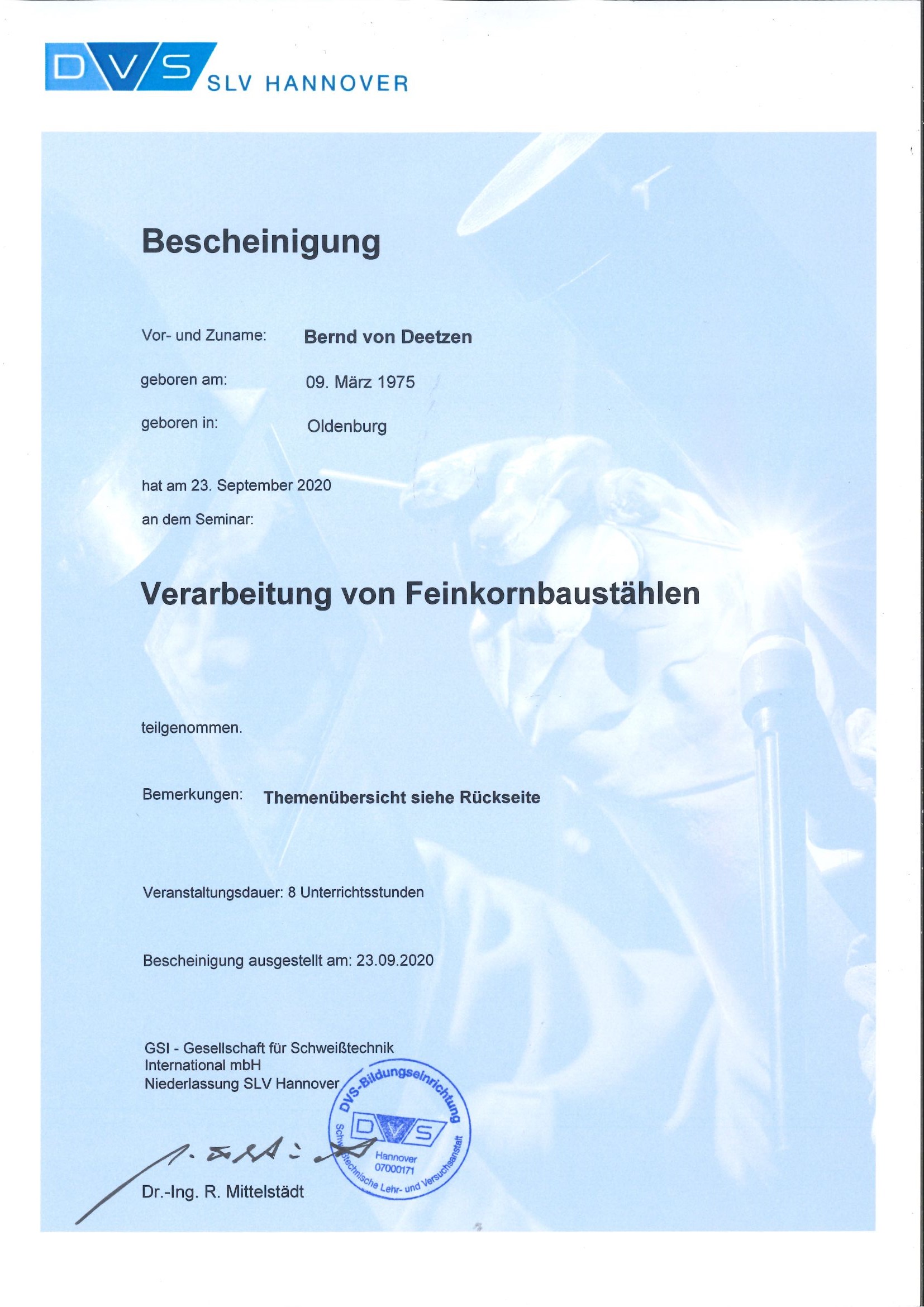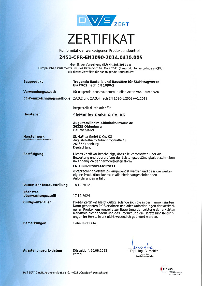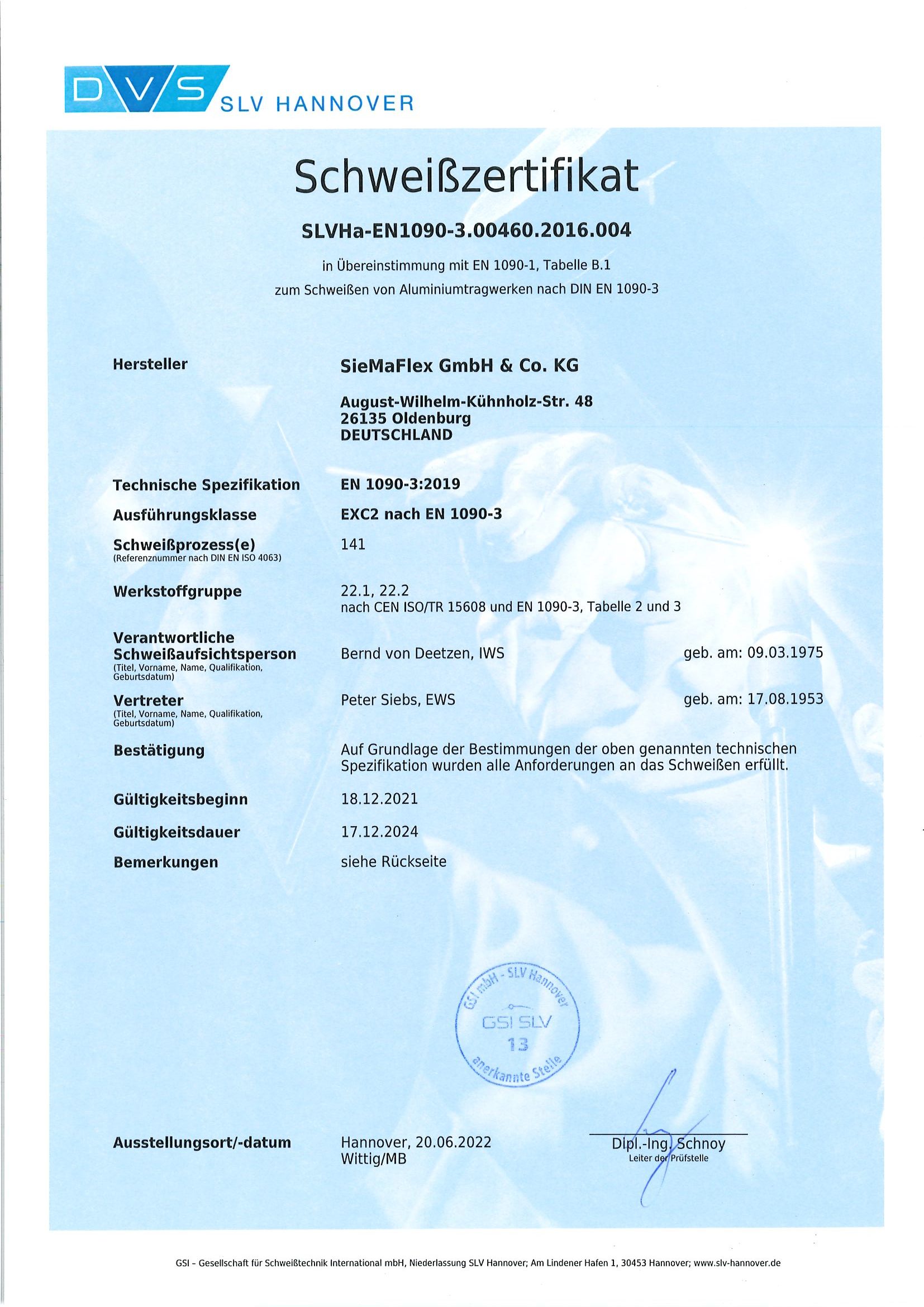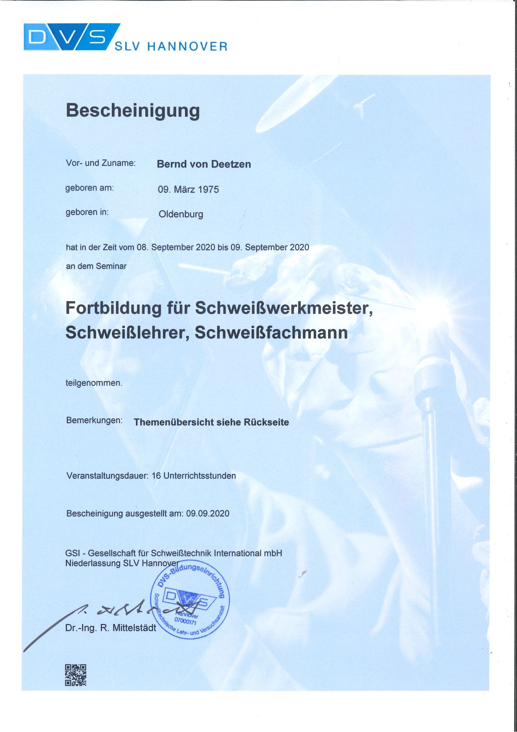 Wir sind ein zer­ti­fi­zier­ter Schweiß­fach­be­trieb und ar­bei­ten nach: